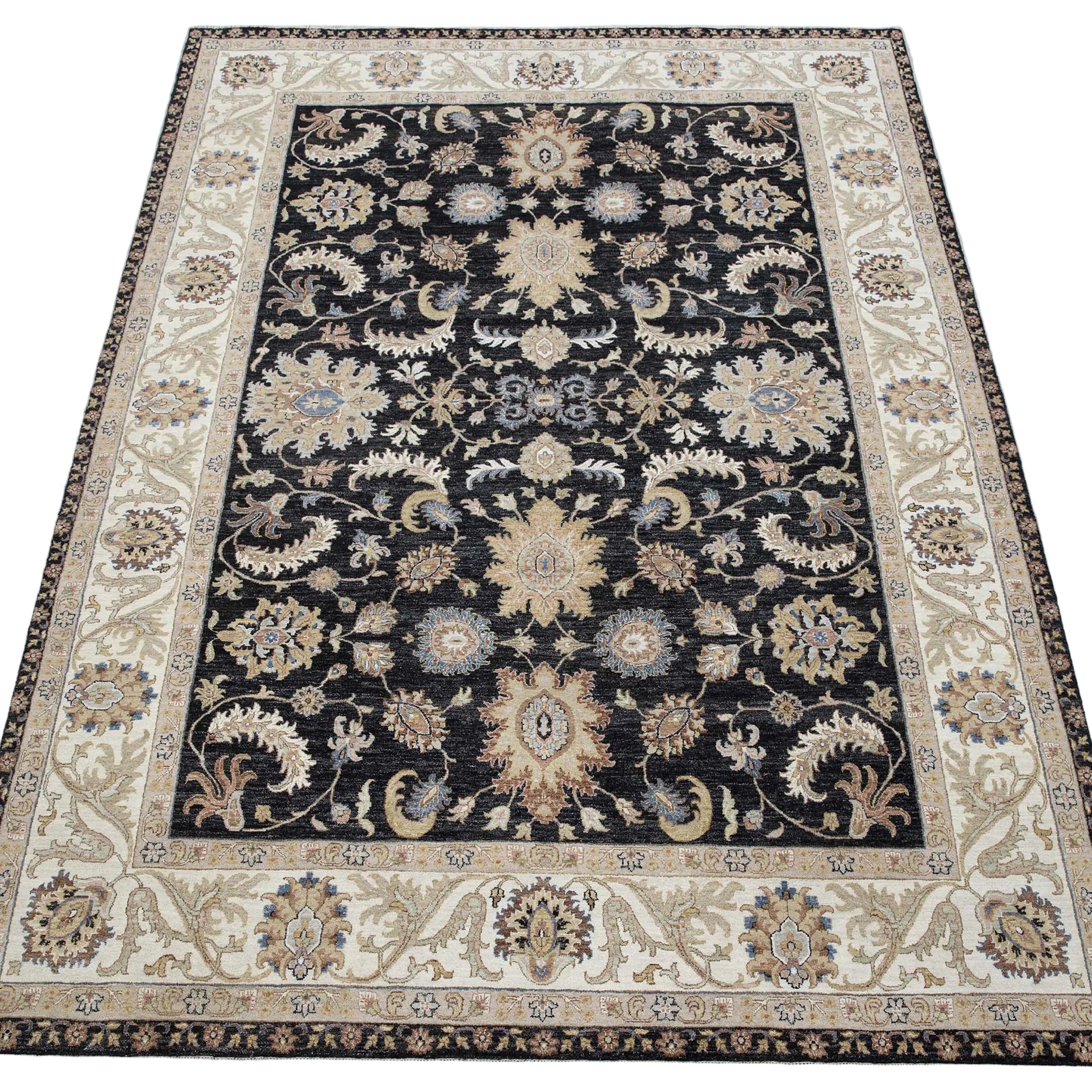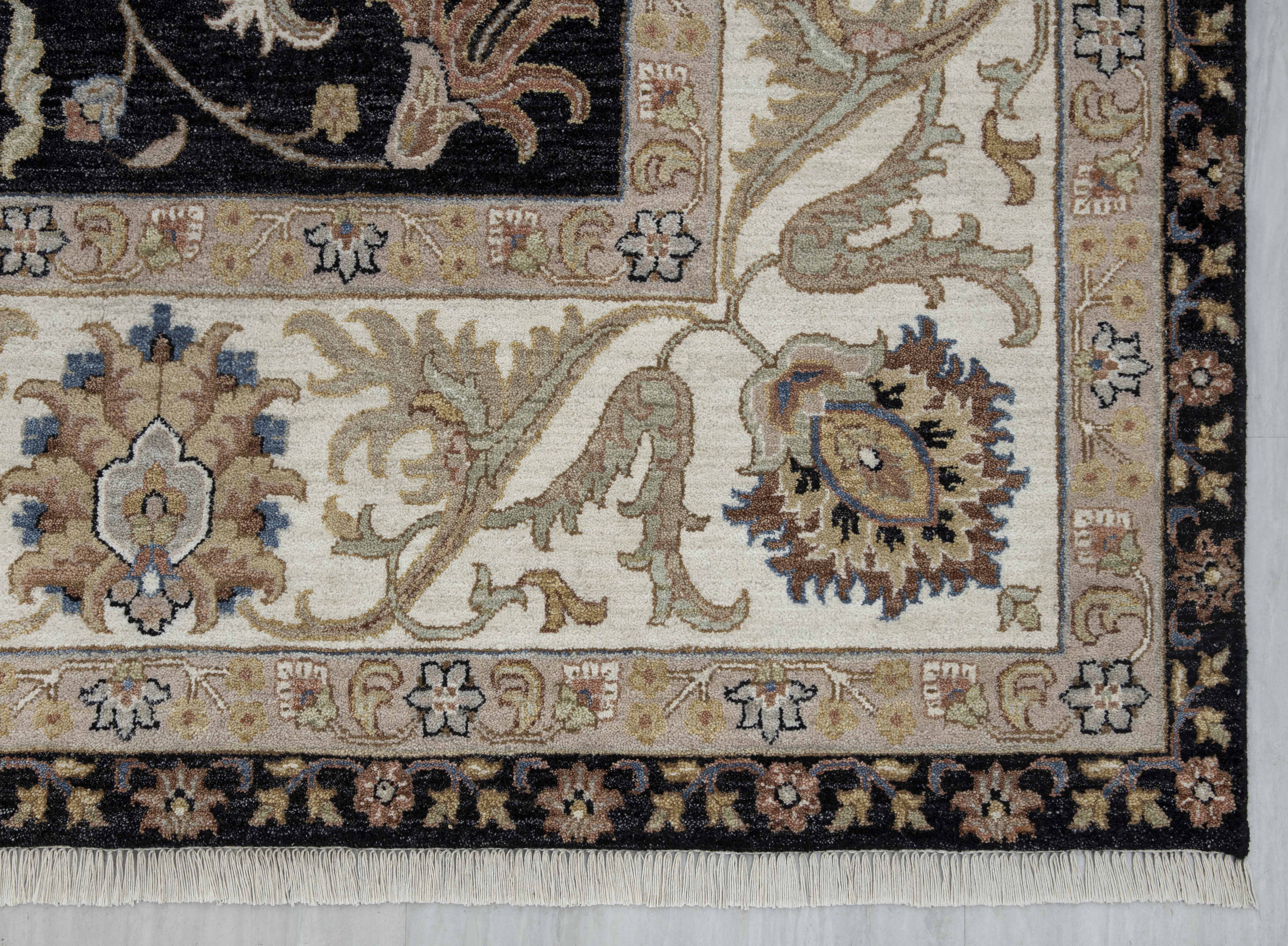 Each rug in Hand Knotted by Master Artisans in Villages of Northern India. Each rugs takes minimum 3 months to complete and time depends on the size and intricacy of the design.
