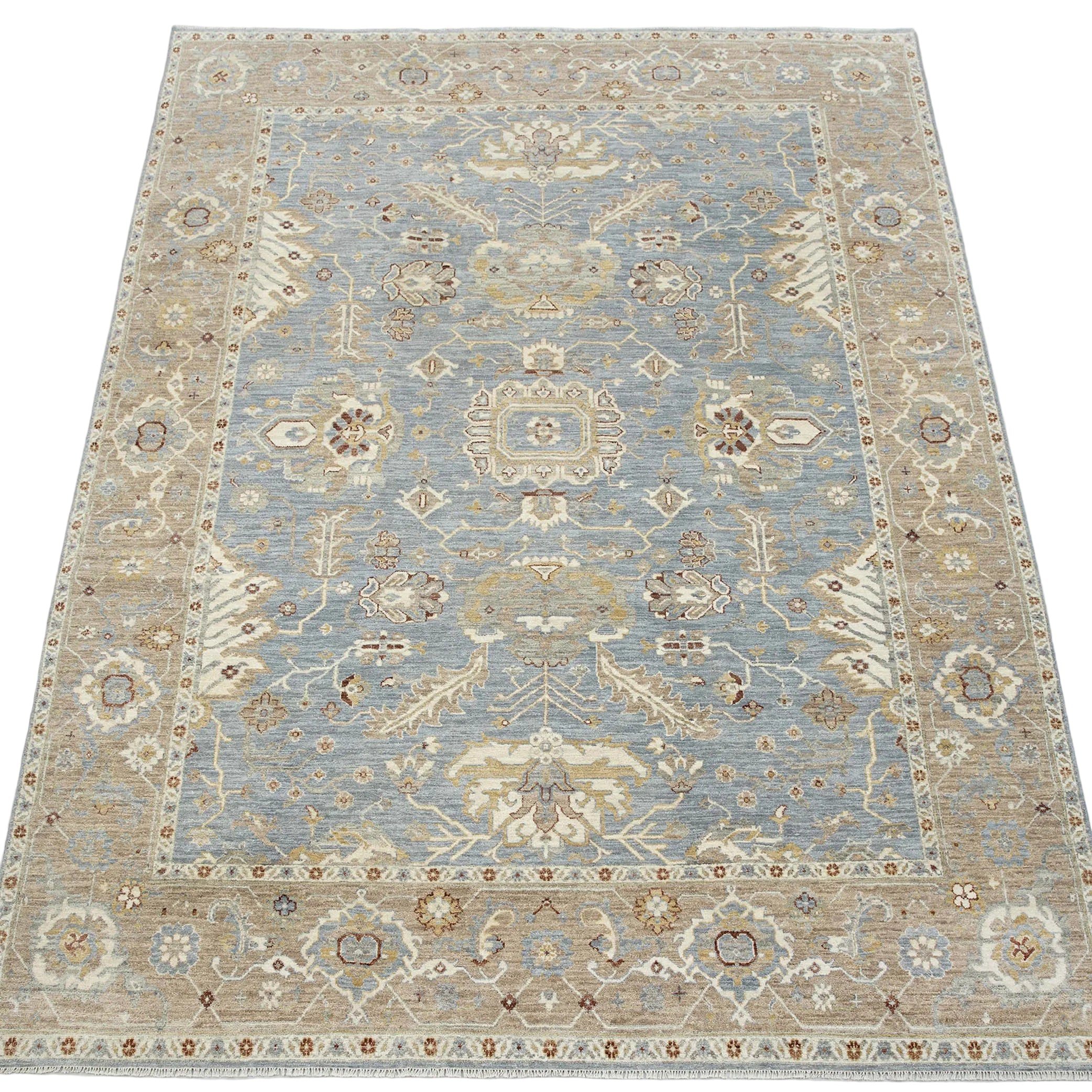 Each rug in Hand Knotted by Master Artisans in Villages of Northern India. Each rugs takes minimum 3 months to complete and time depends on the size and intricacy of the design.