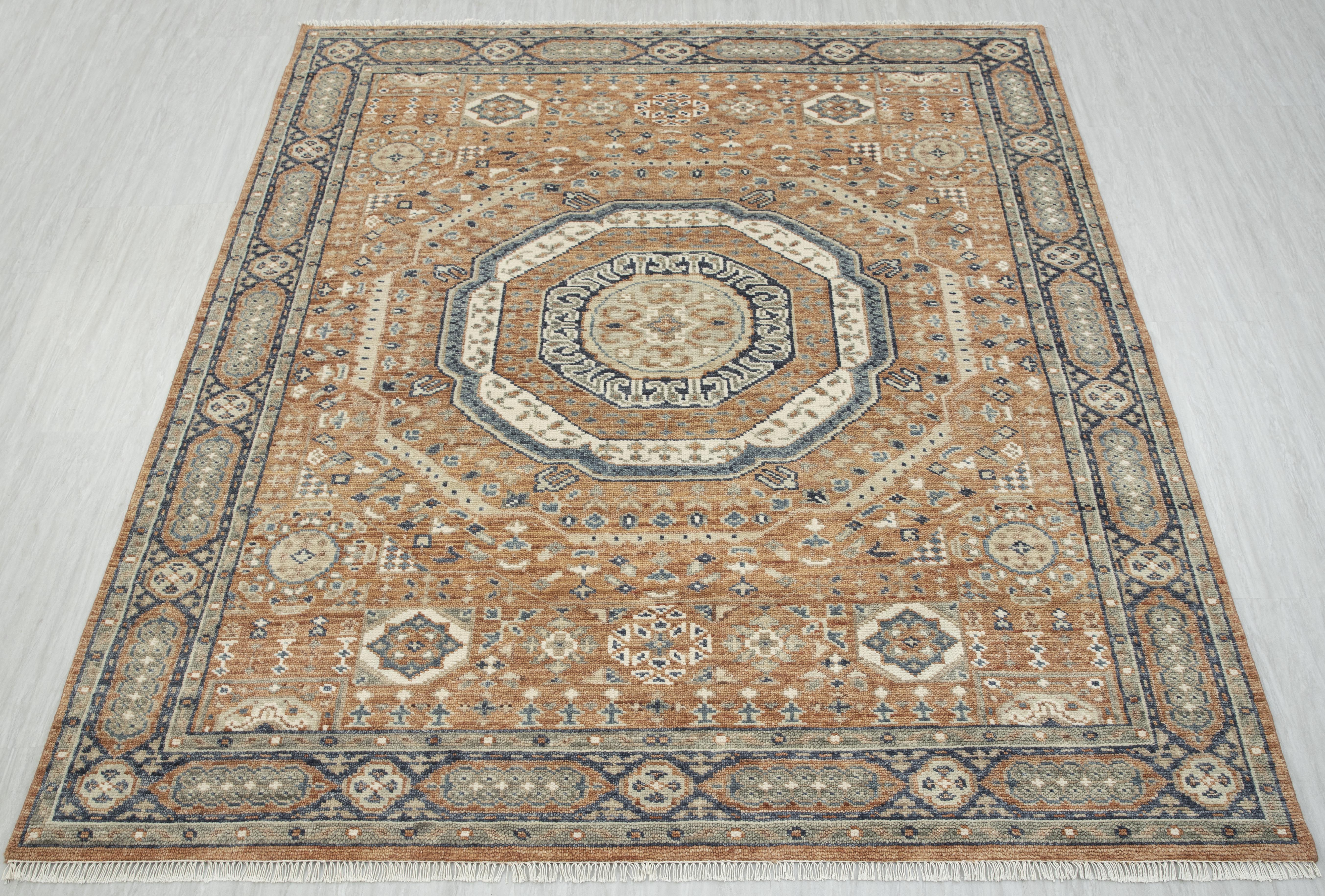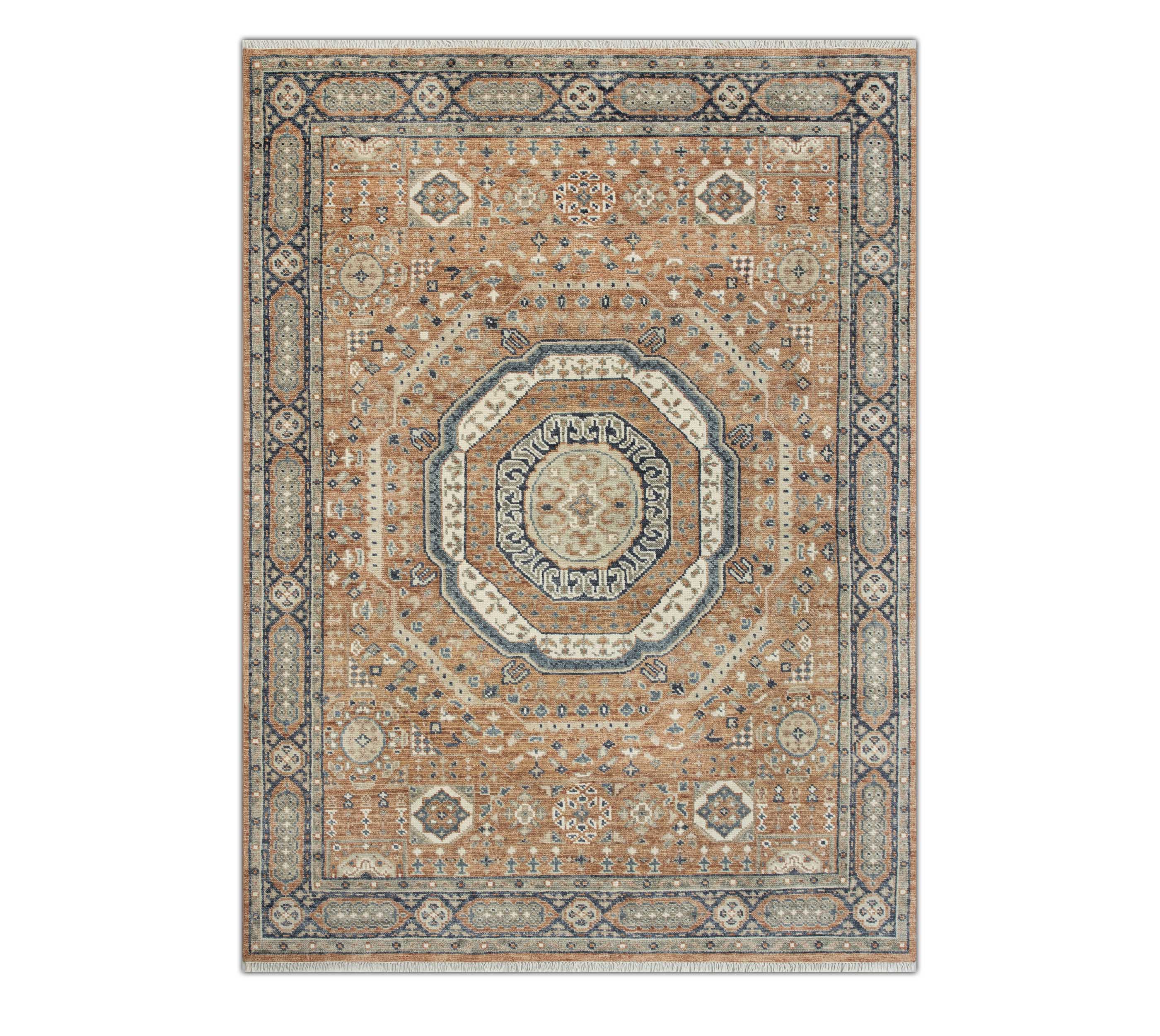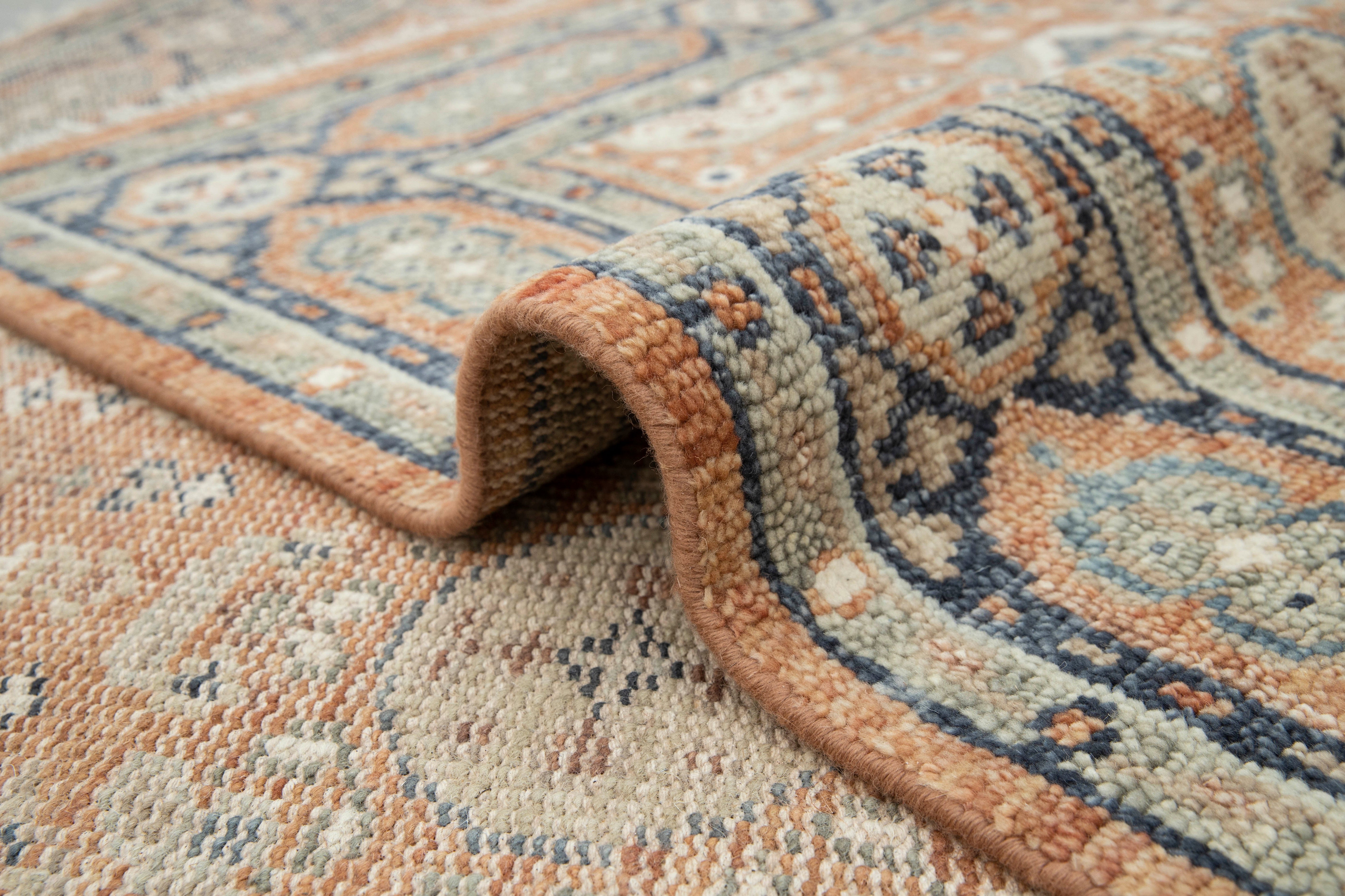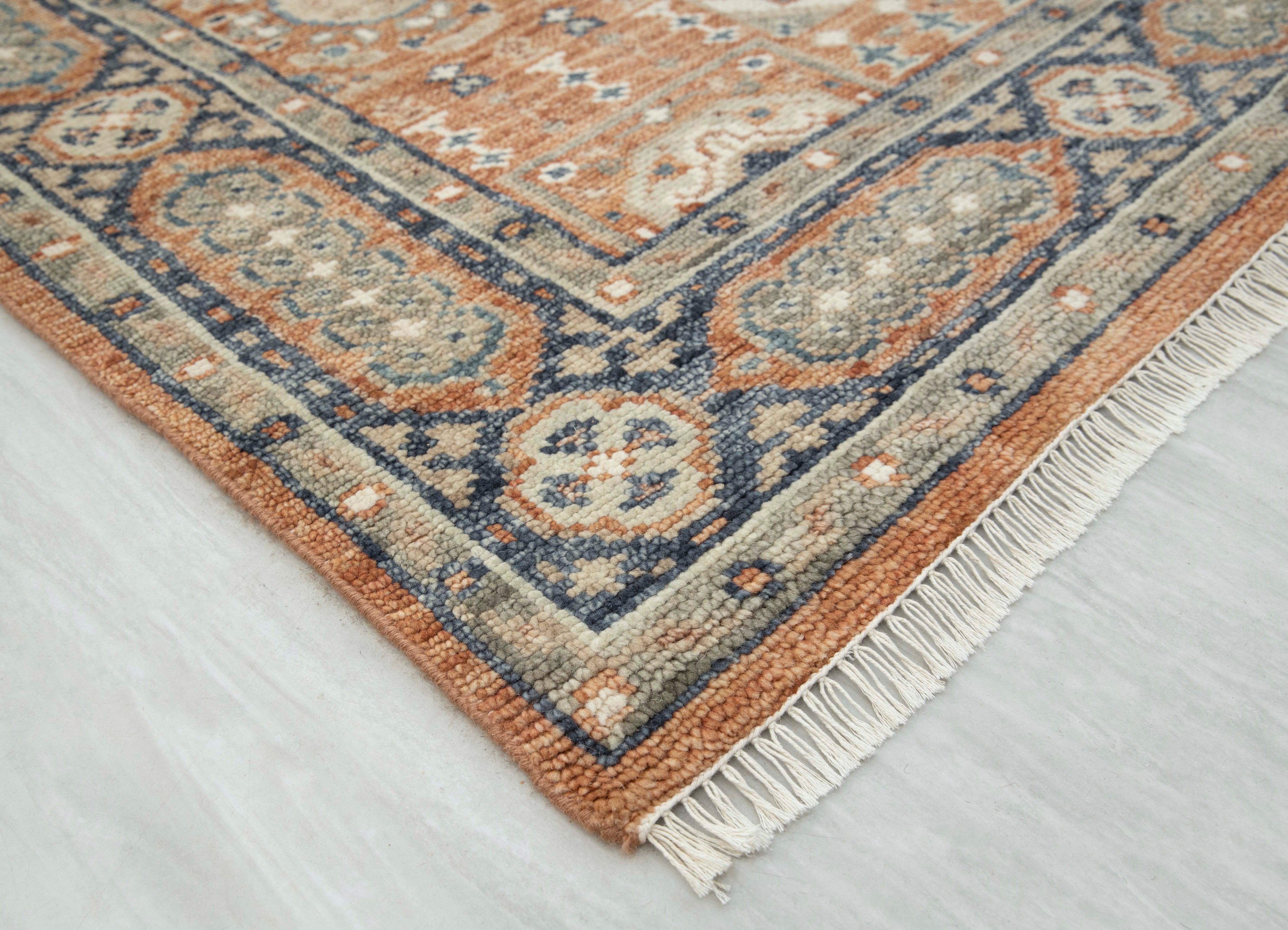 Each rug in Hand Knotted by Master Artisans in Villages of Northern India. Each rugs takes minimum 3 months to complete and time depends on the size and intricacy of the design.