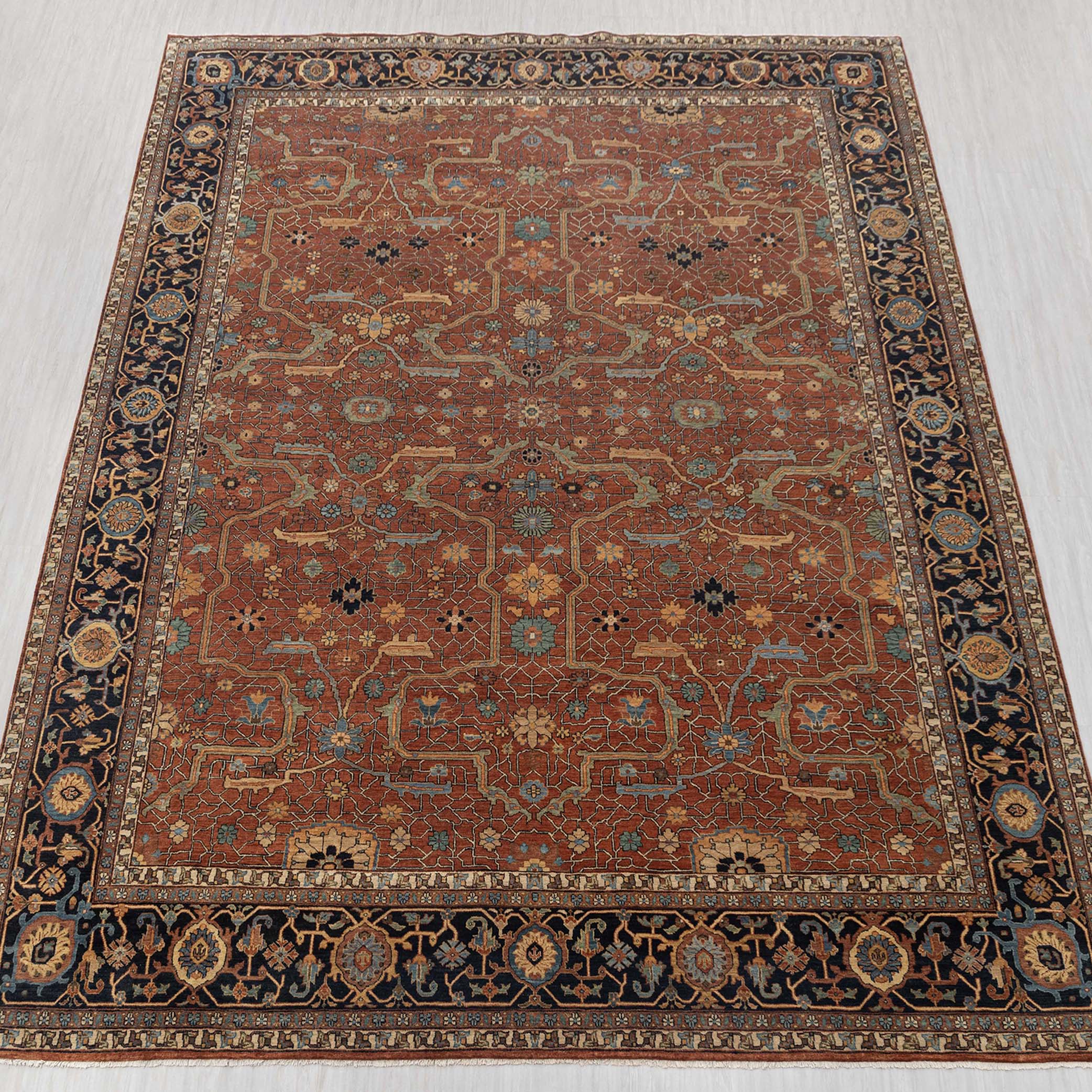 Each rug in Hand Knotted by Master Artisans in Villages of Northern India. Each rugs takes minimum 3 months to complete and time depends on the size and intricacy of the design.