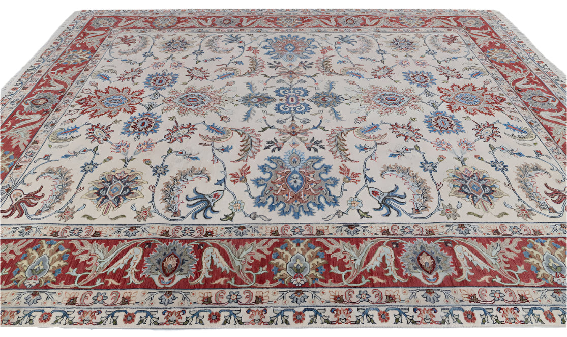 This rug is Inspired from Grand Millennial decor and blend of Traditional & Modern Turkish Oushak Rugs.