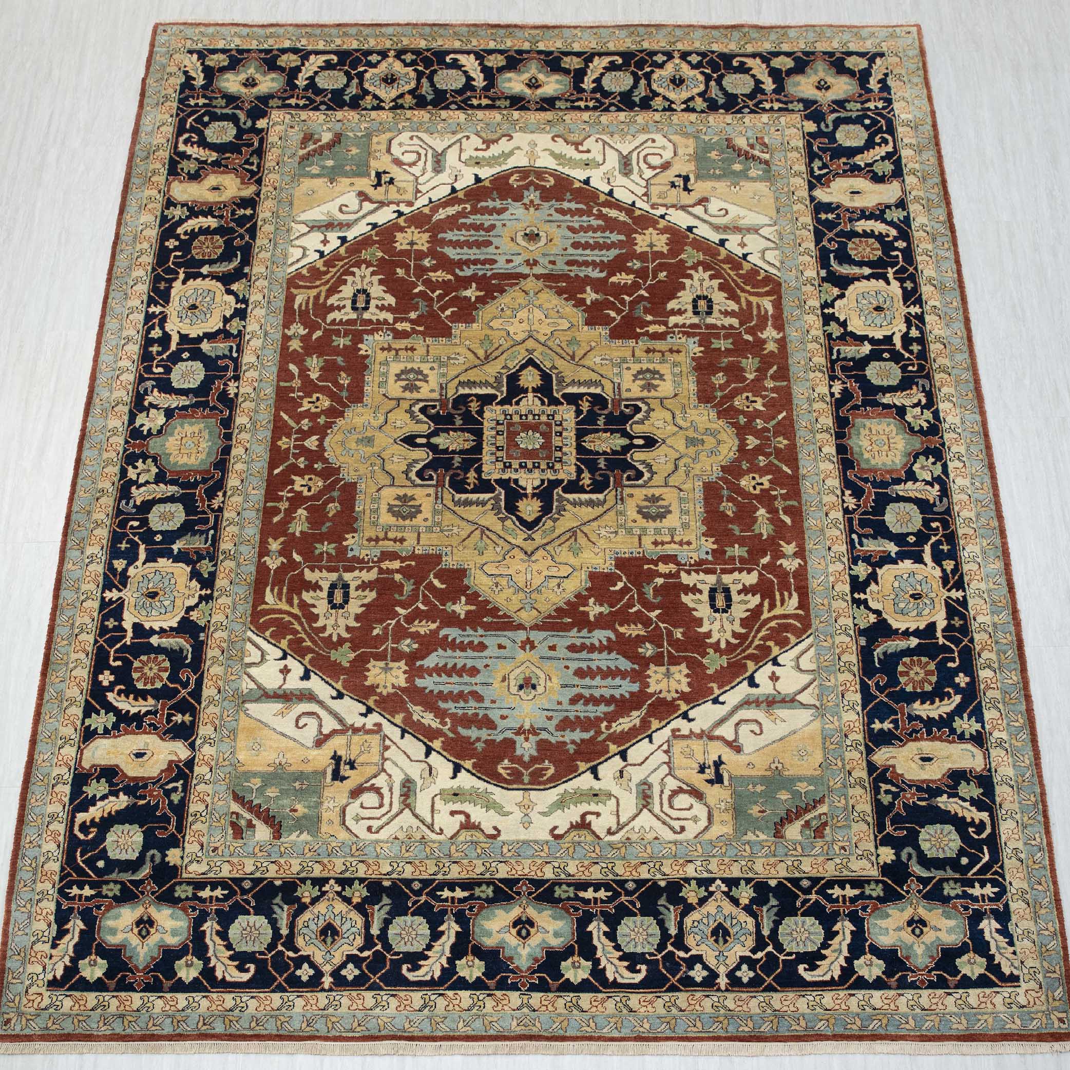 Each rug in Hand Knotted by Master Artisans in Villages of Northern India. Each rugs takes minimum 3 months to complete and time depends on the size and intricacy of the design.