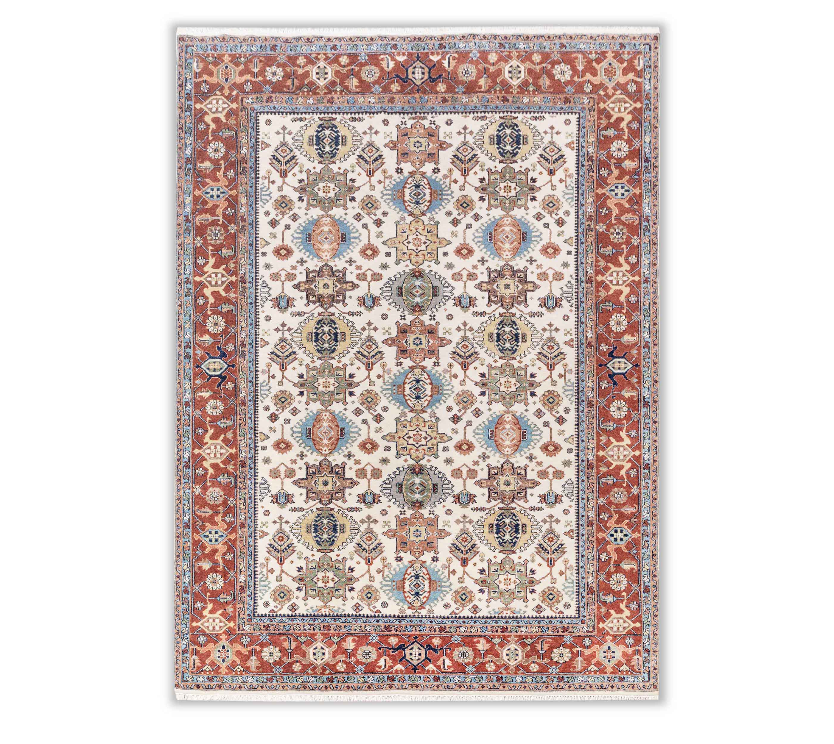 Each rug in Hand Knotted by Master Artisans in Villages of Northern India. Each rugs takes minimum 3 months to complete and time depends on the size and intricacy of the design.
