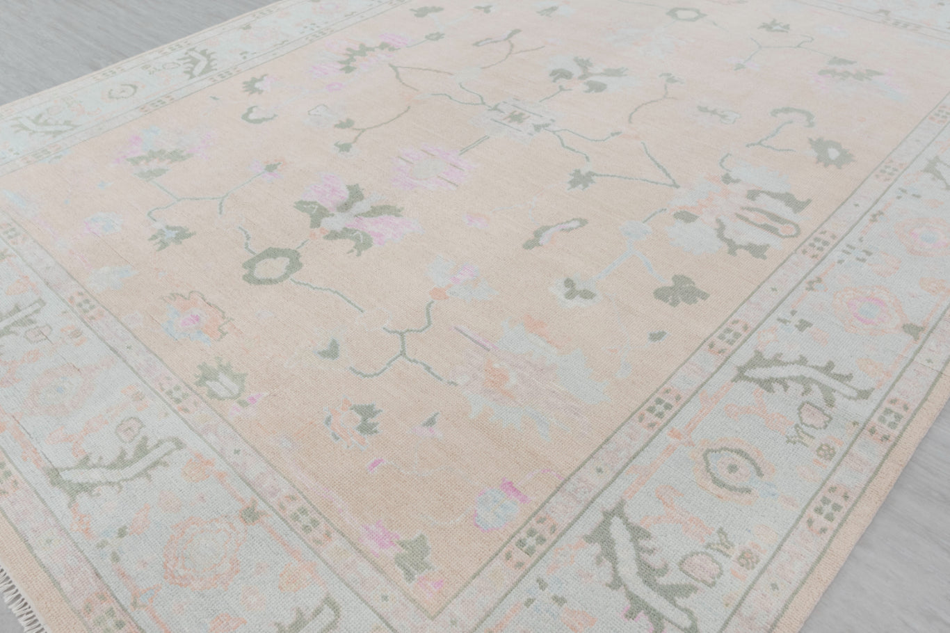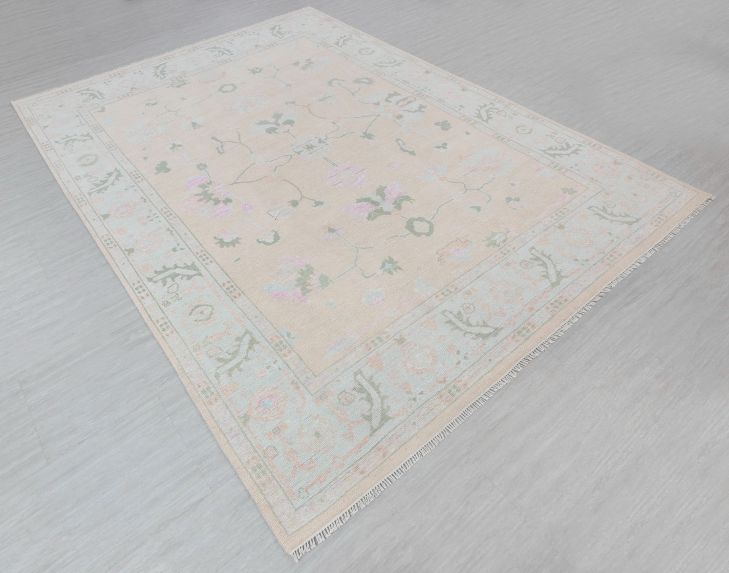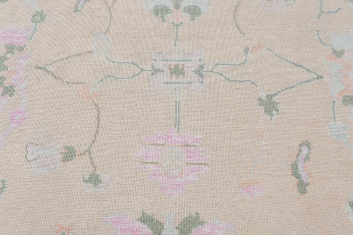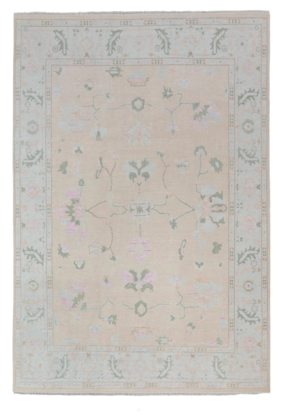 This rug is Inspired from Grand Millenial decor and blend of Traditional & Modern Turkish Oushak Rugs.