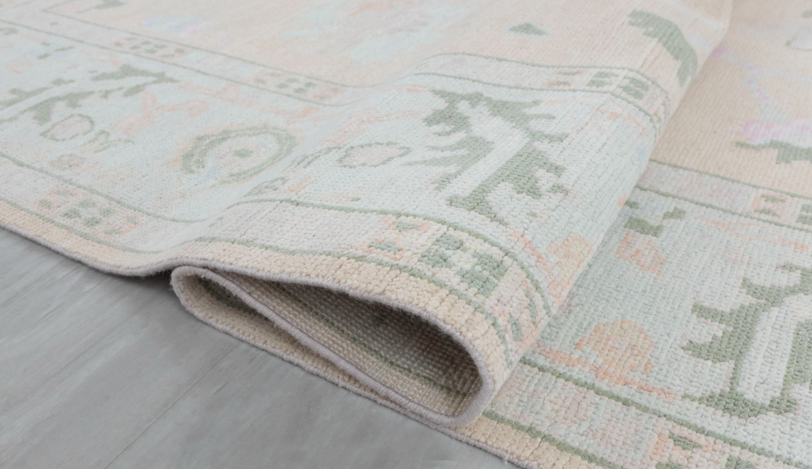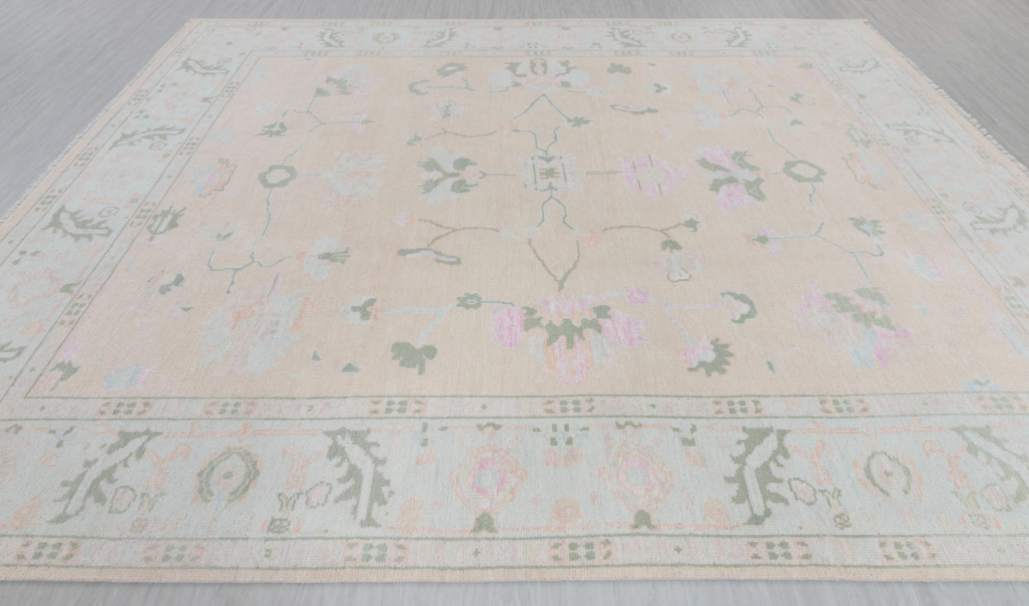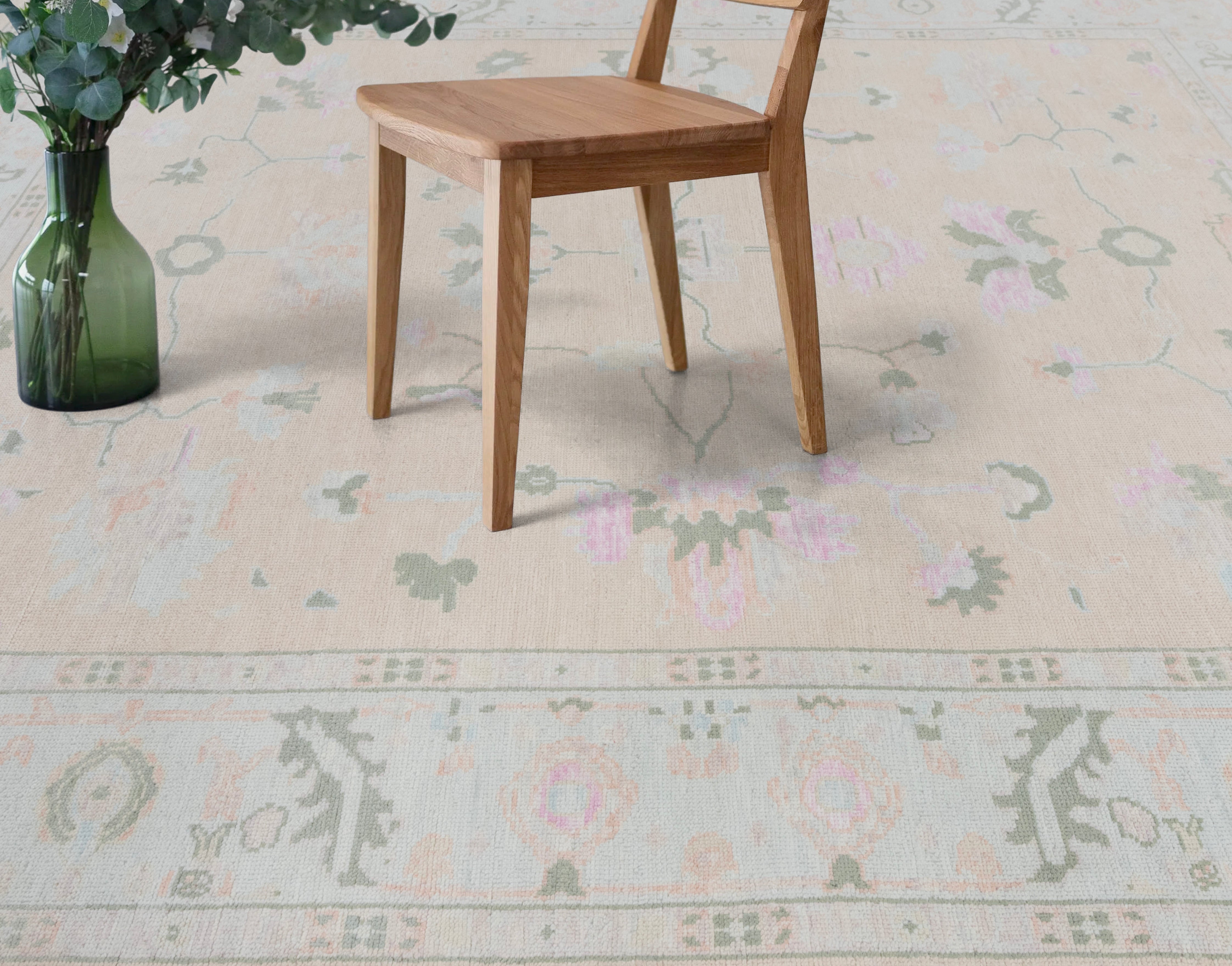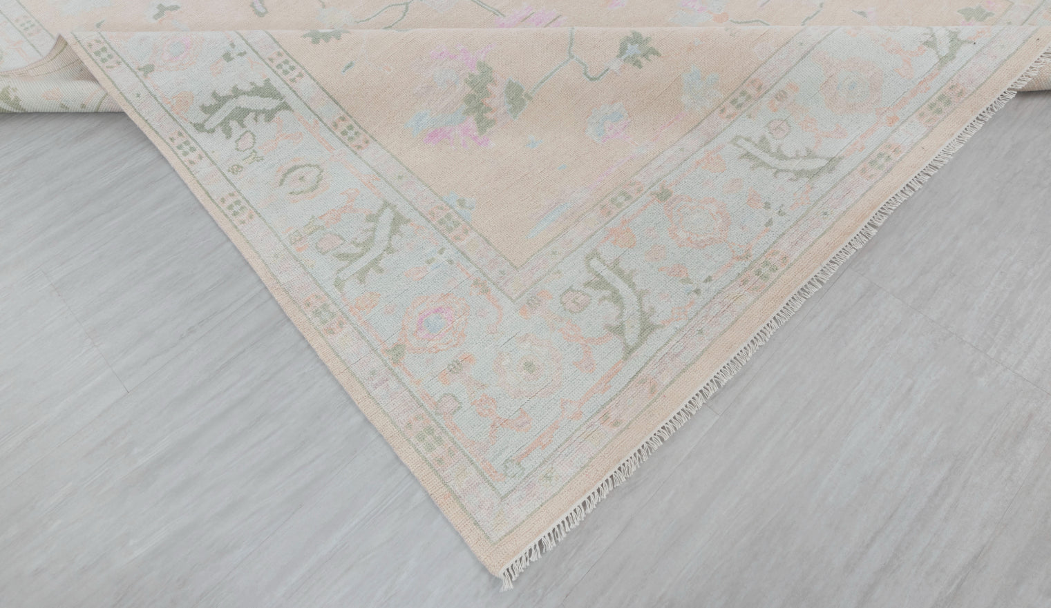 This rug is Inspired from Grand Millenial decor and blend of Traditional & Modern Turkish Oushak Rugs.