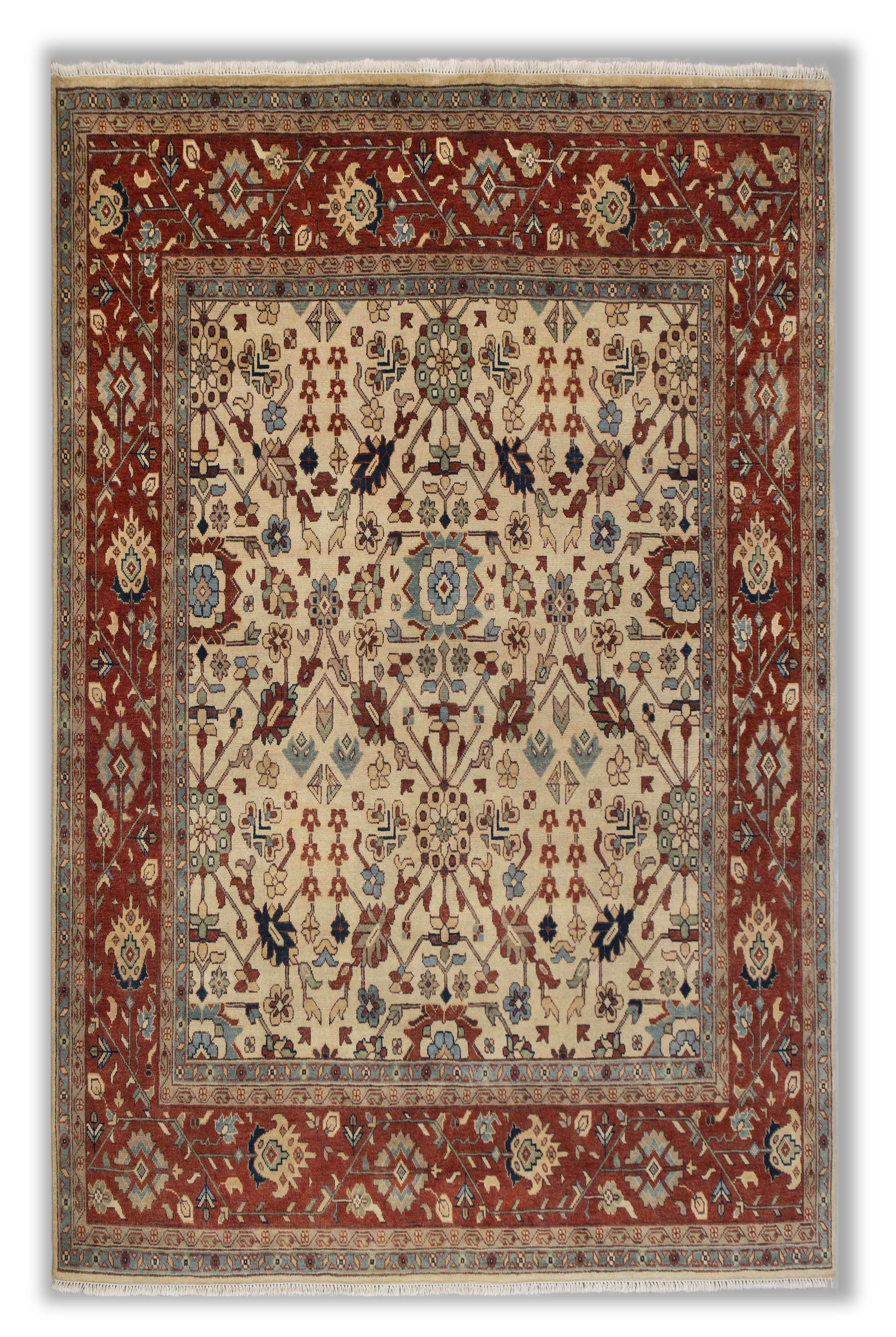 Each rug in Hand Knotted by Master Artisans in Villages of Northern India. Each rugs takes minimum 3 months to complete and time depends on the size and intricacy of the design.